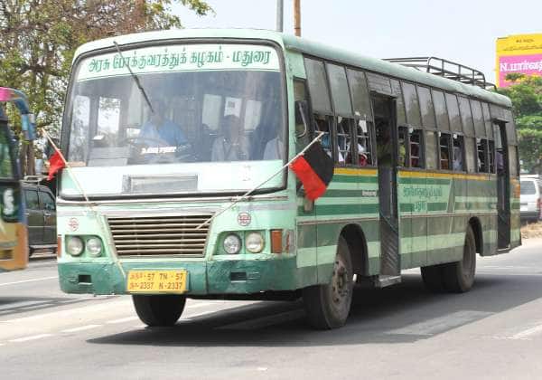 மதுரையில் தி.மு.க.,வின் ஓட்டுச்சாவடி முகவர்கள் பயிற்சி மாநாட்டில் பங்கேற்க தேனியில் இருந்து கட்சியினரை அழைத்து சென்ற அரசு பஸ்களில் தி.மு.க., கொடி கட்டப்பட்டிருந்தது.