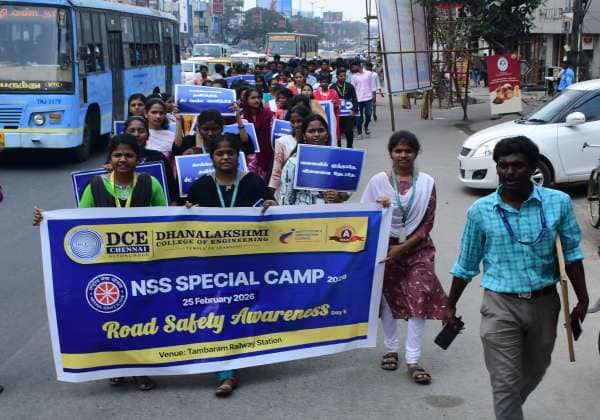 சாலை விதிகளை மதிப்போம் நலமுடன் வாழ்வோம் என்ற கோசத்துடன் தாம்பரம் ரயில் நிலையத்திலிருந்து தாம்பரம் சானிட்டோரியும் வரை விழிப்புணர்வு பேரணி நடத்திய கல்லூரி மாணவர்கள்