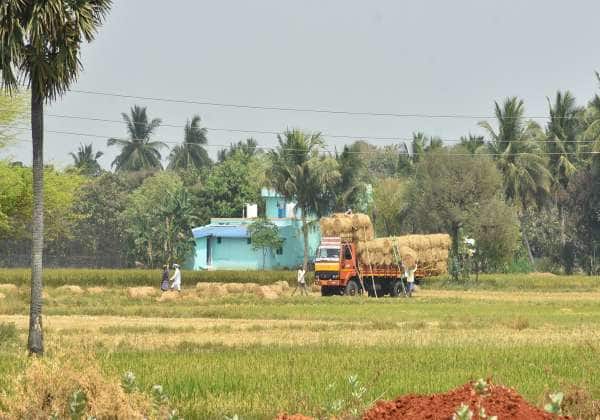விருத்தாசலத்தில் இருந்து சேலம் மற்றும் தர்மபுரி பகுதிகளுக்கு கால்நடைகளுக்கு வைக்கோல் லாரியில் எடுத்து செல்கின்றனர்.