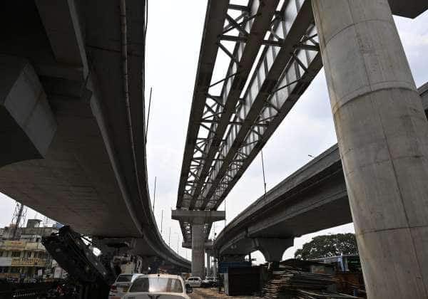 மாதவரம்- சோழிங்கநல்லூர் இடையிலான மெட்ரோ ரயில் இரண்டாம் தடத்தில் அமைக்கப்பட்ட பாதையில் இரும்பு கர்டர் மூலம் இணைக்கும் பணி நடந்து வருகிறது. இடம்: ரெட்டேரி சந்திப்பு.