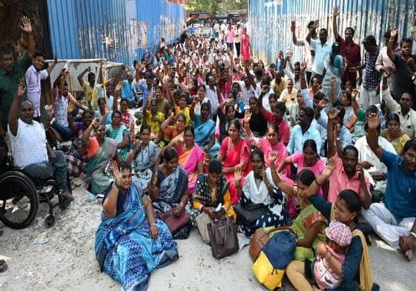 நான்காம் நிலைக்கு இணையான காலமுறை ஊதியம் வழங்க கோரி 20 வது நாளாக கிராம உதவியாளர்கள் எழும்பூர் எழிலகம் வளாகத்தில் காத்திருப்புப் போராட்டத்தில் ஈடுபட்டனர்.