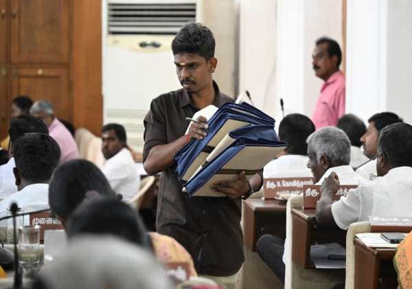 கோவை மாநகராட்சி விக்டோரியா ஹாலில் நடந்த அவசர கூட்டத்தில், பட்ஜெட் கூட்டத்திற்கு வராத கவுன்சிலர்களுக்கு புத்தகங்கள் வழங்கப்பட்டது.