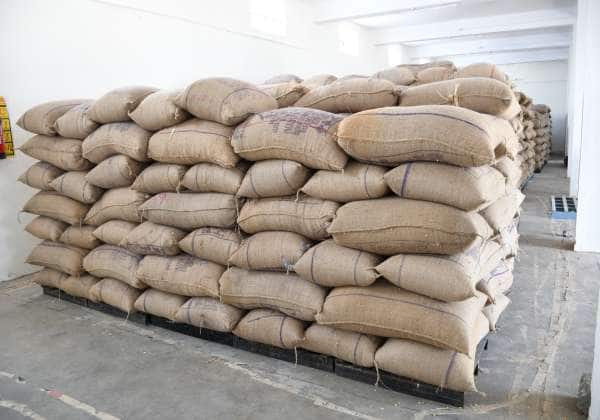 விலை கூடுவதற்காக .... விவசாயிகள் அறுவடை செய்த மக்காச்சோள மூட்டைகளை உடுமலை ஒழுங்குமுறை விற்பனை கூடத்தில் இருப்பு வைத்துள்ளனர்.