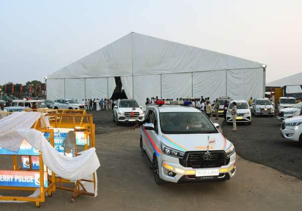 புதுச்சேரி லாஸ்பேட்டை ஹெலிபேடு மைதானத்தில் பிரதமர் மோடி கலந்து கொள்ளும் விழாவை முன்னிட்டு விழா மேடையை கவர்னர் கைலாஷ் நாதன் பார்வையிட்டு வெளியே வந்தார்.