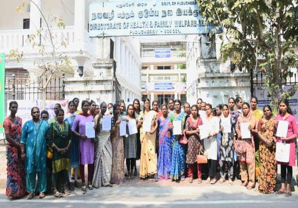 பாலியல் வன்முறையில் ஈடுபட்ட புதுச்சேரி எய்ட்ஸ் கட்டுப்பாட்டு சங்க ஊழியர்கள் மீது நடவடிக்கை எடுக்க வேண்டி திருநங்கைகள் எய்ட்ஸ் கட்டுப்பாட்டு சங்க இயக்குனரிடம் மனு அளித்தனர்
