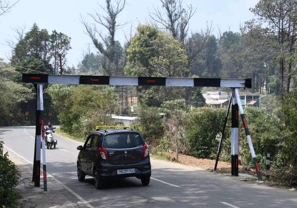 ஊட்டி பிங்கர்போஸ்ட் கால்ப்லிங்ஸ் சாலையில், கனரக வாகனங்கள் செல்ல தடை அமைக்கப்பட்டுள்ளது.
