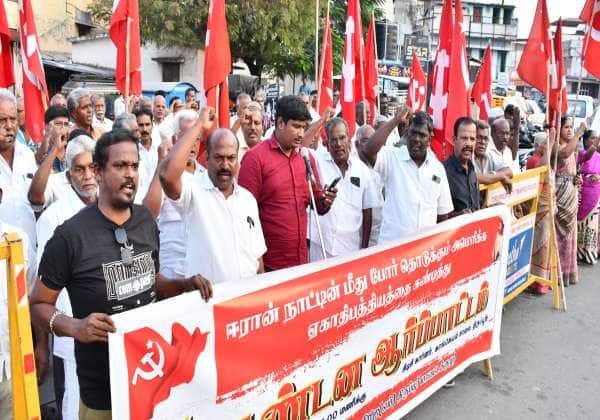 அமெரிக்காவை கண்டித்து திருப்பூர்,சி.டி.சி., கார்னரில் சி.பி.ஐ., சார்பில் ஆர்ப்பாட்டம் நடந்தது.