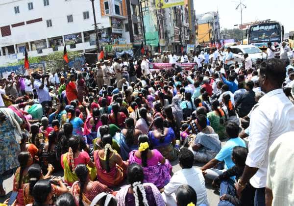 விழுப்புரம் கலெக்டர் வளாகம் முன்பு திருச்சி ரோட்டில் வருவாய் துறை சங்கங்களின்கூட்டமைப்பு சார்பில் பல்வேறு கோரிக்கைகளை வலியுறுத்தி சாலை மறியல் செய்தவர்களை போலீசார் கைது செய்தனர்.