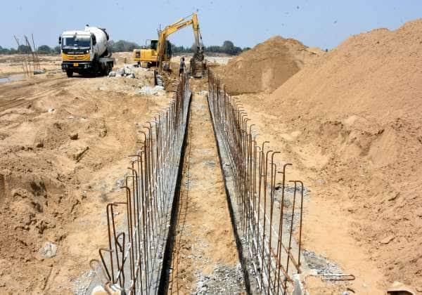 மயிலாடுதுறை மாவட்டம் சீர்காழி அருகே கொள்ளிடம் ஆற்றின் குறுக்கே தரை கீழ் நீர் நெறி சுவர் கட்டுமான பணி நடந்து வருகிறது