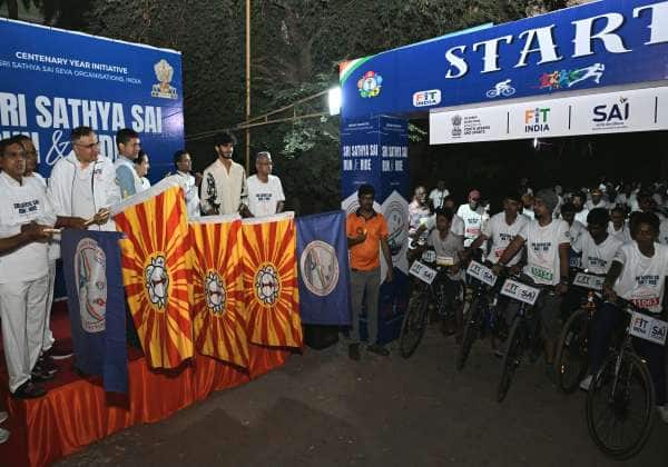 ஶ்ரீ சத்ய சாய் சேவா அமைப்பு சார்பில் ரன் அண்டு ரெய்டு என்ற தலைப்பில் நடந்த சைக்கிள் பயணம் மற்றும் நடைபயணத்தை கொடியசைத்து துவக்கி வைத்த இடமிருந்து ஶ்ரீ சத்ய சாய் சேவா அமைப்பு மாநில தலைவர் ராகவேந்திரா, சன்மார் குழும நிர்வாக இயக்குநர் நாராயண் சேதுராமன், ரானே குரூப் தலைவர் ஹரிஷ் லட்சுமணன், அவரது மனைவி மாளவிகா, இசையமைப்பாளர் சாய் அப்யங்கர், ஶ்ரீ சத்ய சாய் சேவா அமைப்பு மாநில செயல் ஒருங்கிணைப்பாளர் சர்வேஸ்வரன் மற்றும் தேசிய இணை செயல் ஒருங்கிணைப்பாளர் சந்திரசேகரன்.இடம் : நீலாங்கரை