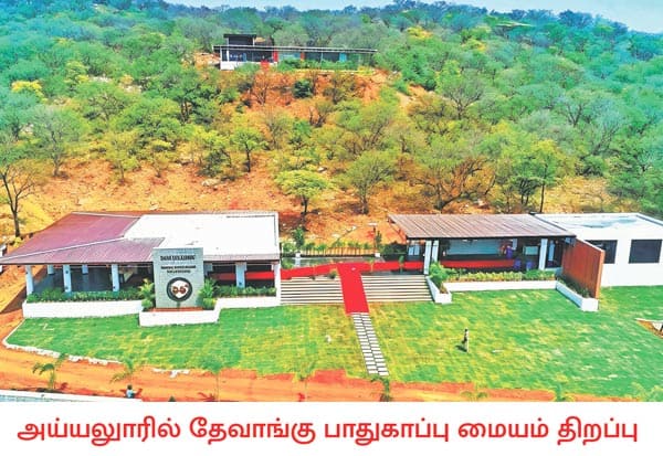 திண்டுக்கல் மாவட்டம் அய்யலூரில் அரிய வகை பாலூட்டி விலங்கான தேவாங்குகள் காணப்படுகின்றன. அவற்றை அழிவில் இருந்து பாதுகாப்பதற்கான நம் நாட்டின் முதல் தேவாங்கு சரணாலயம் 16 கோடி ரூபாய் செலவில் கட்டப்பட்டுள்ளதை காட்டும் கழுகு பார்வை காட்சி.