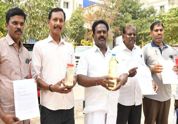 கோவை சின்னவேடம்பட்டி குன்னி நாயக்கர் தோட்டத்தில் போர்வெல்லில் ரசாயன கழிவுகள் கலப்பதால், குடிநீர் பயன்படுத்த முடியாத அளவு உள்ளது என்று கோவை கலெக்டர் அலுவலகத்தில் மனு கொடுக்க வந்தனர்.