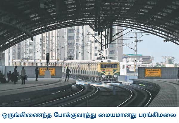 சென்னை கடற்கரையில் இருந்து வேளச்சேரி வரையிலான மேம்பால ரயில் வழித்தடம், பரங்கிமலை வரை விரிவுபடுத்தப்பட்டு, ரயில் சேவை துவங்கியது. இதன் வாயிலாக மேம்பால ரயில் மெட்ரோ ரயில் புறநகர் மின்சார ரயில் போக்குவரத்தை இணைக்கும் மையமாக பரங்கிமலை மாறியிருப்பது பயணியரிடையே வரவேற்பை பெற்றுள்ளது. இடம்: புழுதிவாக்கம், சென்னை.
