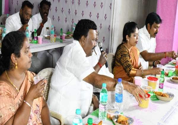 திண்டுக்கல்லில் இப்தார் நோன்பு திறக்கும் நிகழ்ச்சியில் முன்னாள் அமைச்சர் சீனிவாசன், மேயர் இளமதி, பா.ம.க.,மாநில பொருளாளர் திலகபாமா முன்னாள் எம்.எல்.ஏ., பரமசிவம்.