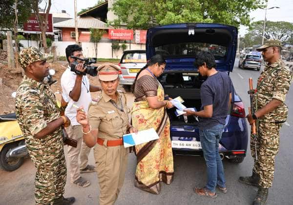 கோவையில் பல்வேறு இடங்களில் தேர்தல் பறக்கும் படையினர் தீவிர சோதனையில் ஈடுபட்டனர். இடம்: வடவள்ளி ரோடு.