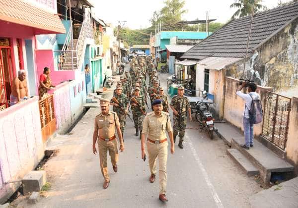விழுப்புரம் கீழ்பெரும்பாக்கம் துணை ராணுவ படை வீரர்களின் கொடி.அணிவகுப்பு நடந்தது.