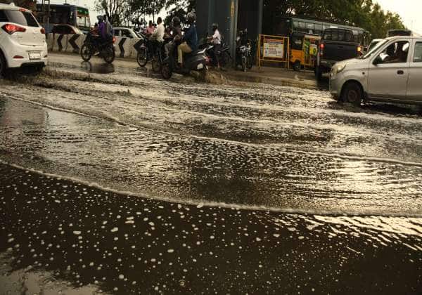 கோவையில் பெய்த மழையால் உக்கடம் பஸ் ஸ்டாண்ட் அருகே தேங்கிய மழை நீர்.