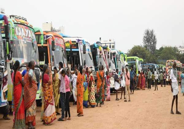 தி. மு. க.,வை கண்டித்து கோவையில் அ. தி.மு. க., மற்றும் பா.ஜ., இணைந்து நடத்திய ஆர்ப்பாட்டத்திற்கு சாரை சாரையாக தனியார் பேருந்தில் வந்த தொண்டர்கள்.