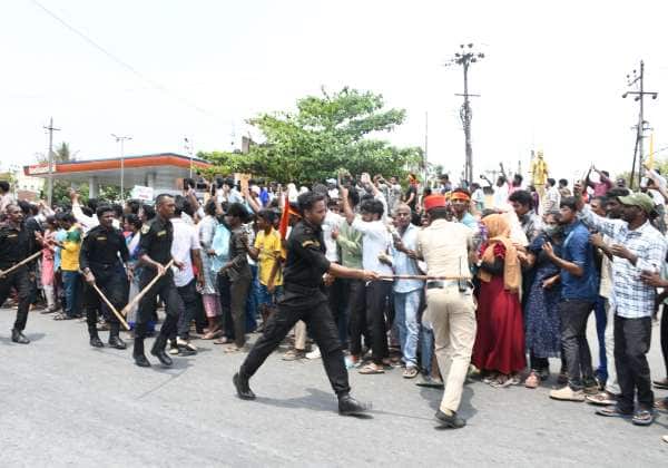 த.வெ.க.,தலைவர் விஜயை காண புதுச்சேரி மரப்பாலத்தில் திரண்டு இருந்த கூட்டத்தினரை போலீசார் லேசான தடியடி நடத்தி ஒழுங்குப்படுத்தினர்.