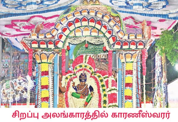 சித்திரை பெருவிழாவை முன்னிட்டு, சைதாப்பேட்டை காரணீஸ்வரர் கோவிலில் அறுபத்து மூவர் விழா நடந்தது. இதில் சிறப்பு அலங்காரத்தில் பக்தர்களுக்கு அருள் பாலித்த காரணீஸ்வரர்