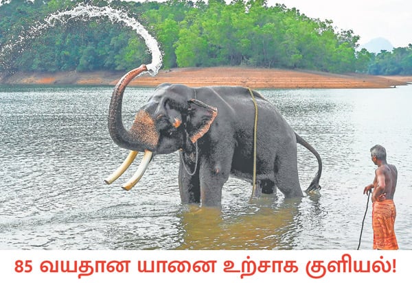 கேரளாவின் திருவனந்தபுரத்தில் உள்ள கோட்டூர் யானைகள் மறுவாழ்வு மையம், உலகிலேயே மிகப்பெரிய யானை பராமரிப்பு மையமாக உருவெடுத்து வருகிறது. இந்த மையத்தைச் சேர்ந்த 85 வயதான சோமன் என்ற யானை, நெய்யார் அணையில் உற்சாகமாக குளியல் போட்டது. அதை அருகிலிருந்து ரசித்த பாகன்.