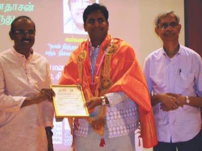கல்வி, ஆராய்ச்சி மற்றும் கலாச்சார பரிமாற்றத்தில் சிறந்த பங்களிப்பை வழங்கியதற்காகவும், உலகம் முழுவதும் தமிழ் கலாச்சாரம் மற்றும் பாரம்பரியத்தை பரப்பியதற்காகவும் எத்தியோப்பியா ஆகிய நாடுகளின் புதுமை மற்றும் தொழில்நுட்ப அமைச்சகத்தின் முதன்மை அறிவியல் ஆலோசகர் பேராசிரியர் கிருஷ்ணராஜ் ராமசாமிக்கு, ஹைவுட் என்டர்டெயின்மென்ட் இணைந்து வழங்கிய தமிழ்நாடு சாதனையாளர் விருது 2025 இன் வாழ்நாள் சாதனையாளர் விருது வழங்கப்பட்டது