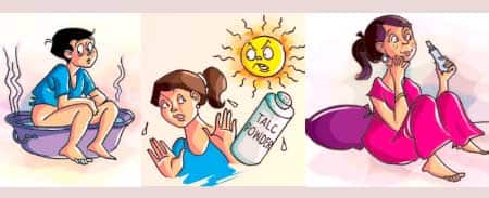 * டால்கம் பவுடர் உபயோகப்படுத்தாதீர்கள்.சருமத்தில் உள்ள அழுக்கு,வியர்வையை வெளியேற்றி, சருமத் துளைகளை, சோப்புசுத்தமாக்குகிறது. டால்கம்பவுடர்கள் பயன்படுத்தினால், அவைதுளைகளில் தங்கி விடும். வியர்வையுடன் இதுசேரும்போது, துளைகளில் பாக்டீரியா வளரும்.சீழ்க்கட்டிகள் உருவாகும்.
