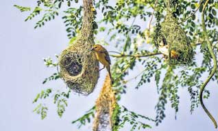 கூடுகளை புற்கள், நெற்கதிர்களின் நார்களைக் கொண்டு கட்டுகின்றன. ஒவ்வொரு நாரும் 20 முதல் 60 செ.மீ. நீளம் கொண்டதாக இருக்கும். ஒரு கூட்டைக் கட்டி முடிக்க, 500 முறை இவை மேலும் கீழுமாகப் பறக்கின்றன. கட்டி முடிக்கச் சுமார் பதினெட்டு நாட்கள் ஆகும். நடுவிலிருக்கும் உருண்டை வடிவத்தைக் கொண்டுவர மட்டுமே எட்டு நாட்கள் பிடிக்கும். அழகான இந்தக் கூடுகளைக் கட்டுவது ஆண் பறவைகள்.