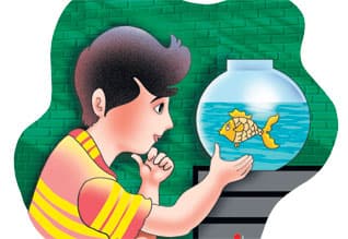 ''சரி, நான் உங்களுடன் வருகிறேன். என்னைக் கொண்டு போய் உங்க வீட்டுத் தொட்டியில் வளருங்கள். பிறகு நான் பெரியதானதும் சாப்பிடுங்கள்'' என்றது வருத்தம் தோய்ந்த குரலில். அவருக்கு மீன் சொல்வது சரி என்று பட்டது.