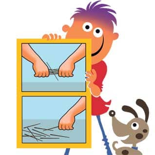 சிறிய குச்சிகளை கற்றையாகப் பிடித்துக் கொண்டு, பெரிய குச்சியை அதன் நடுவில் குறுக்காக வைத்துக் கொள்ள வேண்டும்.