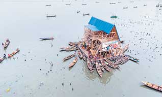 “மாணவர்களால பள்ளிக்குப் போகமுடியாது; அப்போ பள்ளிகள் மாணவர்கள் கிட்ட வரும். அதாவது, கப்பல்கள் மேல சின்னச்சின்ன கிளாஸ்கள் கட்டியிருக்காங்க. அதை காலையில் தண்ணியில ஓட்டிக்கிட்டு வந்து, குழந்தைகளை எல்லாம் ஏத்திக்கிட்டு, ஓரிடத்துல நிறுத்திடுவாங்க. முப்பது பசங்கவரைக்கும் படிக்கறமாதிரியான கிளாஸ் அது. அங்கேயே கம்ப்யூட்டர், புத்தகங்கள், ஆசிரியர்கள் எல்லோரும் இருப்பாங்க. சாயங்காலம் வரைக்கும் வகுப்பு. மறுபடியும் மாலையில், கப்பலிலேயே கரைக்குக் கொண்டு போய்விட்டுடுவாங்க…”