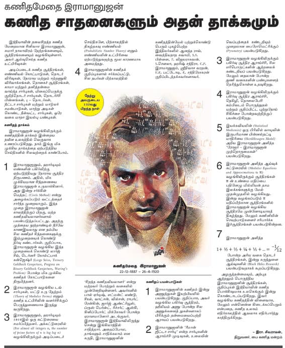 / வாராவாரம் / பட்டம் / கணிதமேதை இராமானுஜன் கணித சாதனைகளும் அதன் தாக்கமும் / கணிதமேதை இராமானுஜன் கணித சாதனைகளும் அதன் தாக்கமும்