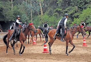 ஊட்டி அருகே லவ்டேல் பகுதியிலுள்ள, லாரன்ஸ் மாணவர்கள் குதிரை சாகச நிகழ்ச்சியில் ஈடுபட்டபோது...