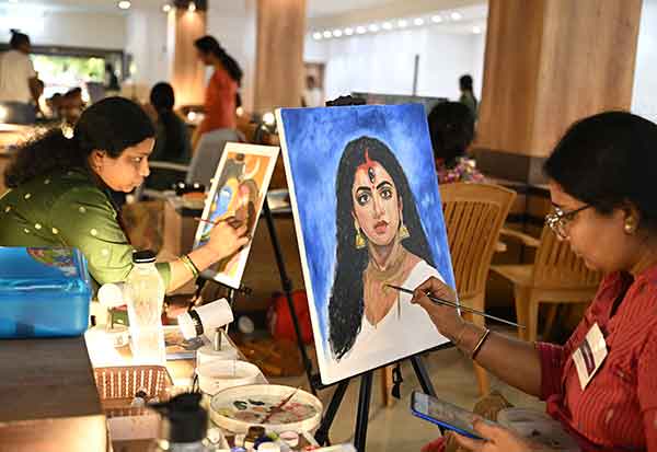 சர்வதேச மகளிர் தினத்தை ஒட்டி, 70க்கும் மேற்பட்ட பெண் ஓவியர்கள் பங்கேற்றுள்ள இரண்டு நாள் ஓவிய கண்காட்சி மற்றும் விற்பனை, எழும்பூரில் அருங்காட்சியகத்தில் நேற்று துவங்கியது.இதில், பெண்களை மையப்படுத்தி பல்வேறு கருப்பொருளில், நம் கண்முன்னே ஓவியங்கள் வரைகின்றனர்.