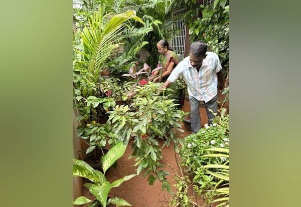 தம்பதியினர் கூறியதாவது: பணிக் காலம் முழுவதும் வாடகை வீட்டில் தான் இருந்தோம். அதனால் தோட்டம், செடிகள் வளர்க்க வாய்ப்பே அமையவில்லை. சொந்த வீடு கட்டும் போது தோட்டம் அமைத்து செடிகள் வளர்க்க வேண்டும் என ஆசை. குறைந்த பரப்பளவில் வீட்டை அமைத்து விட்டு மீதி இடத்தில் விசாலமான தோட்டம் அமைத்தோம், வாசலில் வெற்றிலை, செம்பருத்தி, துளசி போன்ற வகைகளை நட்டோம்.